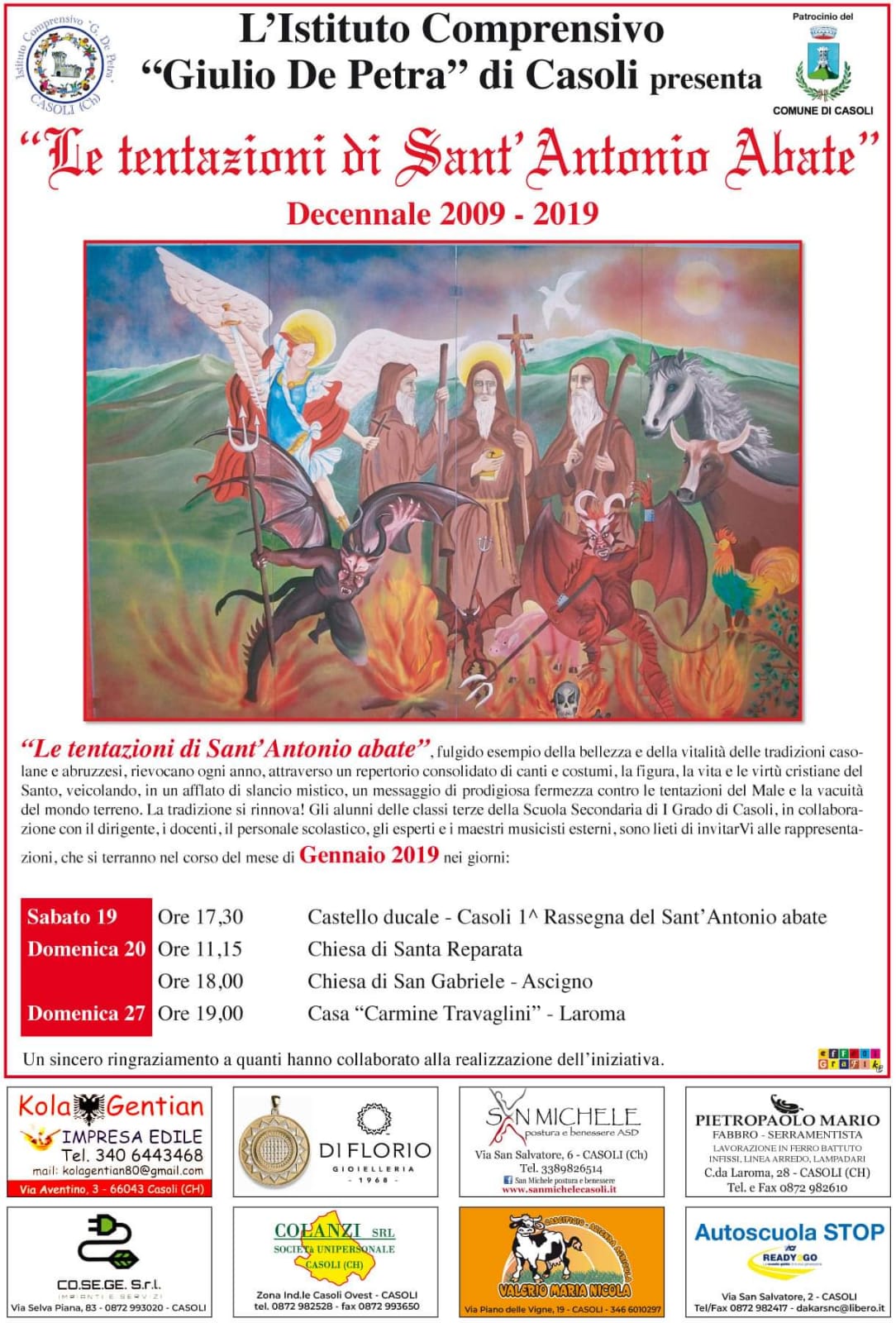 L’Istituto Comprensivo “Giulio De Petra”di Casoli presenta “Le tentazioni di Sant’Antonio Abate” – Decennale 2009/2019.
