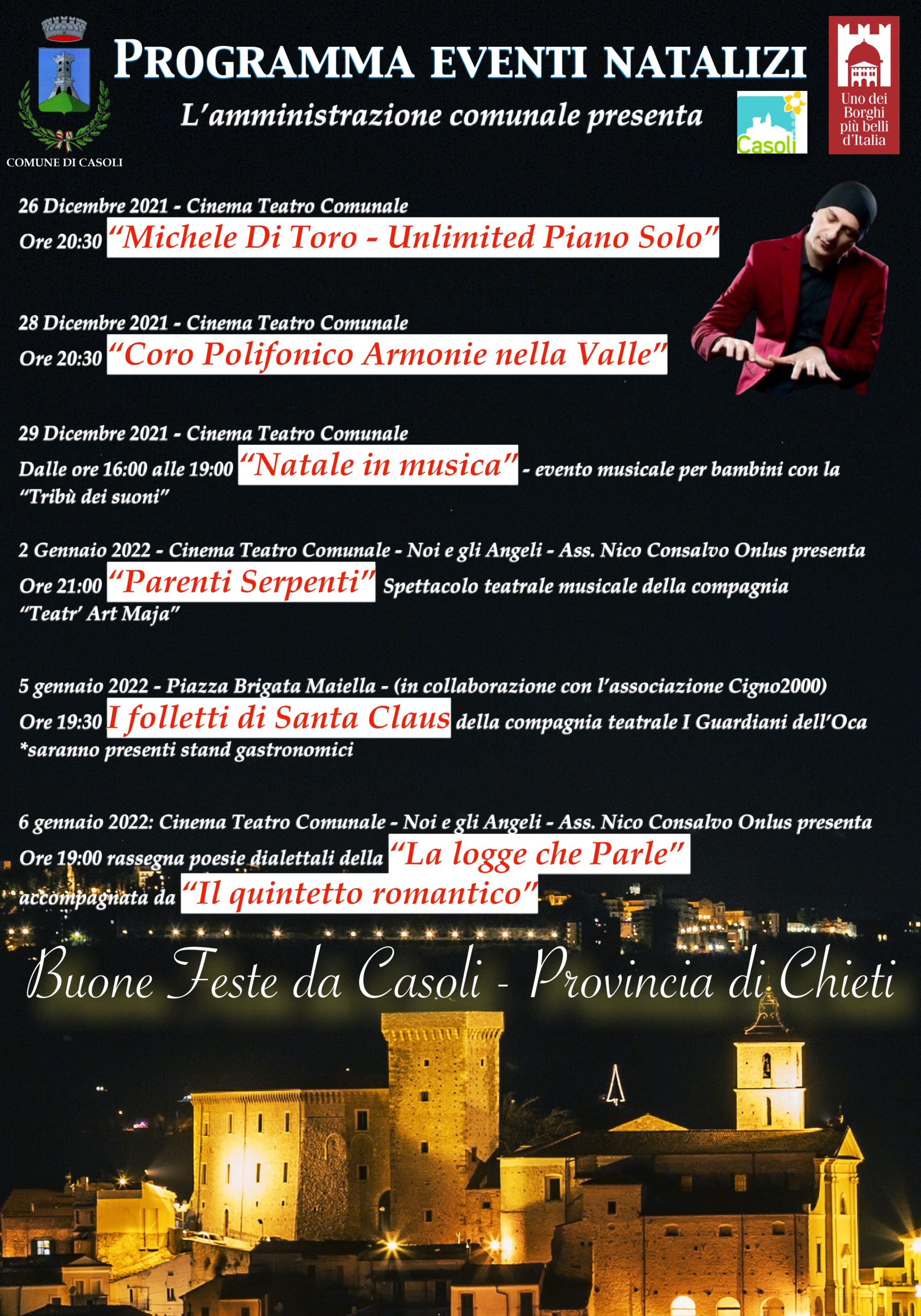 L’Amministrazione Comunale di Casoli rende nota la locandina con gli eventi in programma per le festività Natalizie 2021.