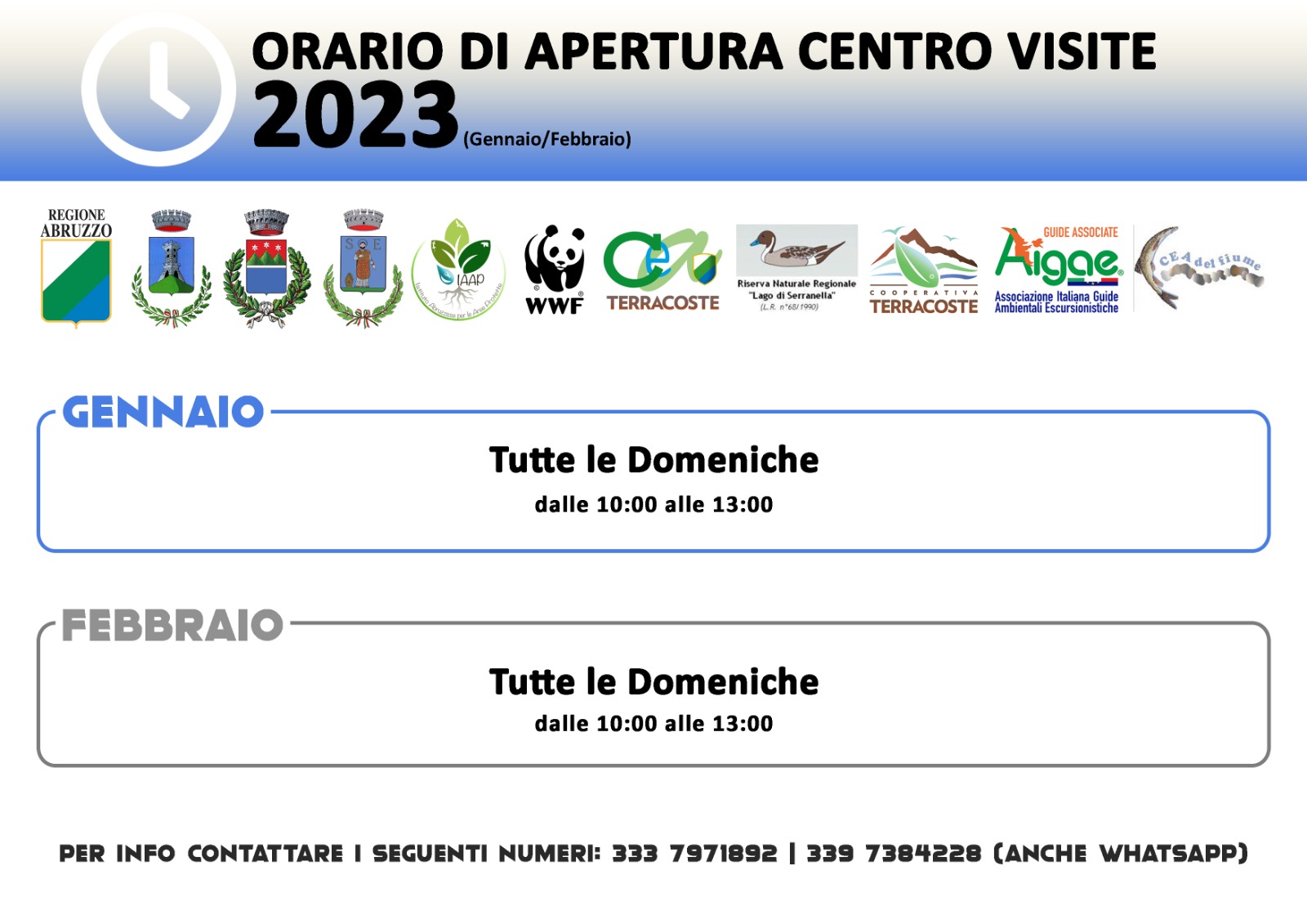 Orari di apertura del centro visite Oasi di Serranella per il mese di gennaio 2023